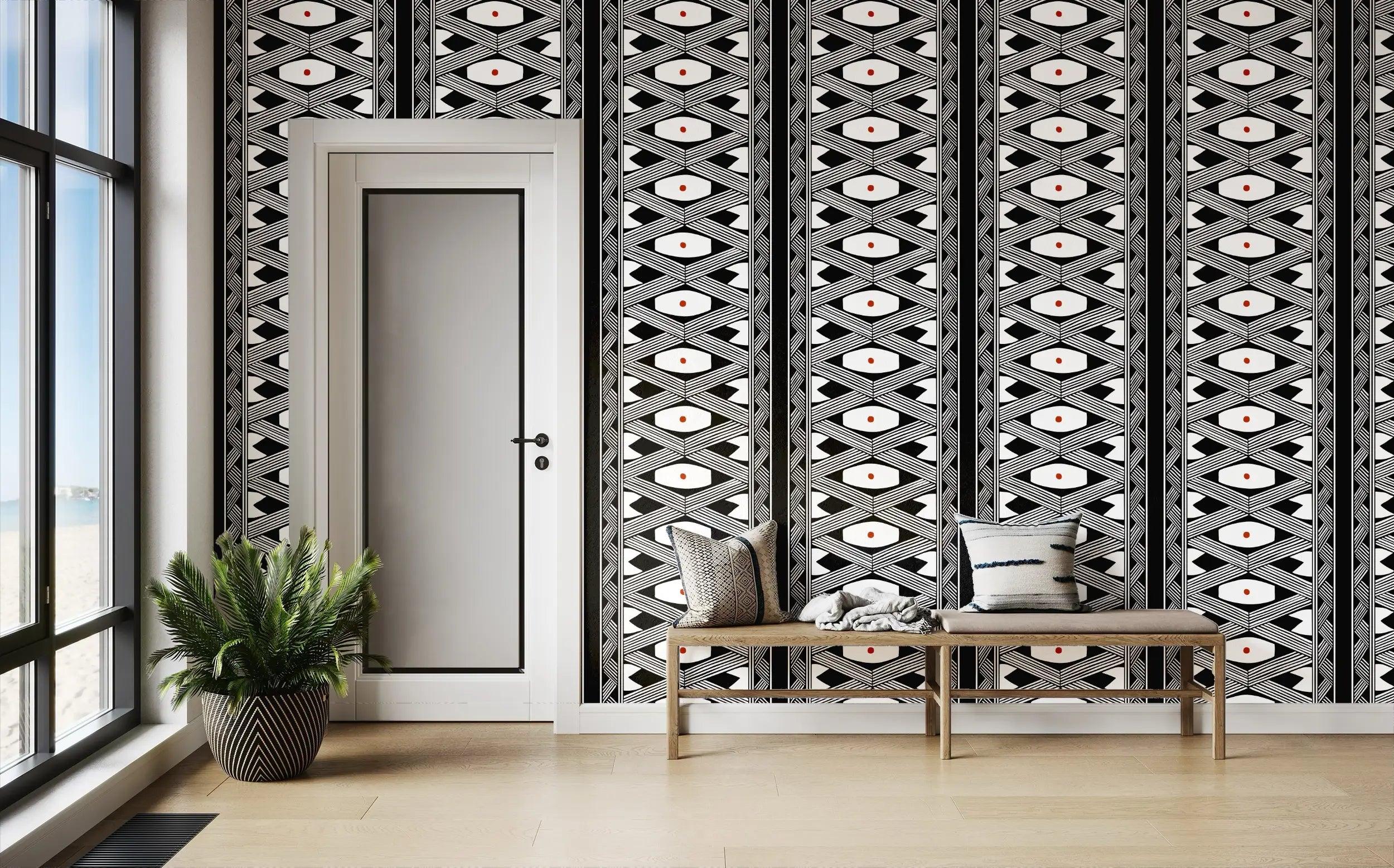Each Anduba wallcovering includes a custom acrylic plaque that transforms spaces from merely decorated to meaningfully storied. The plaque identifies the artist, their community, and explains the cultural significance of the pattern's motifs. With an integrated QR code linking to more in-depth stories, walls become conversation starters and cultural bridges.
